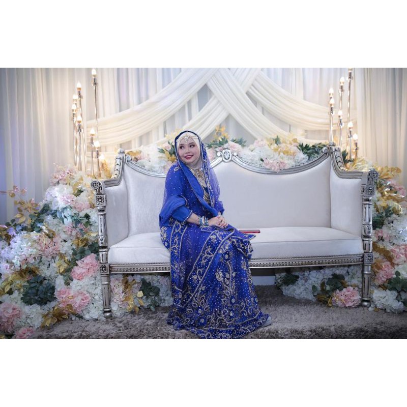 Sewa baju bollywood muslimah lehenga heavy bridal warna royal blue (3 pcs baju, skirt, selendang) with complete accessories boleh chat untuk ukuran.
